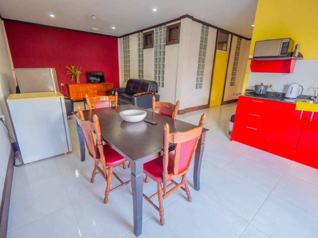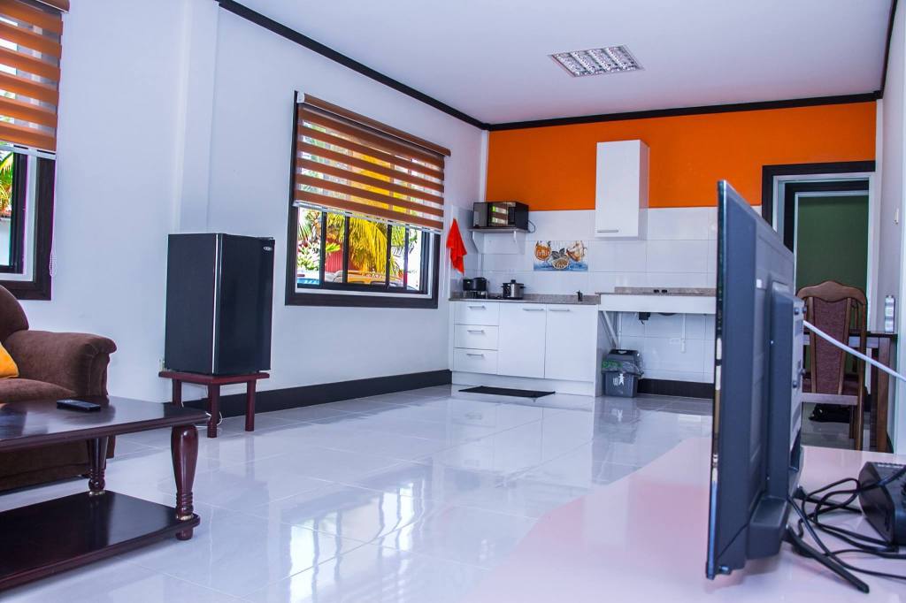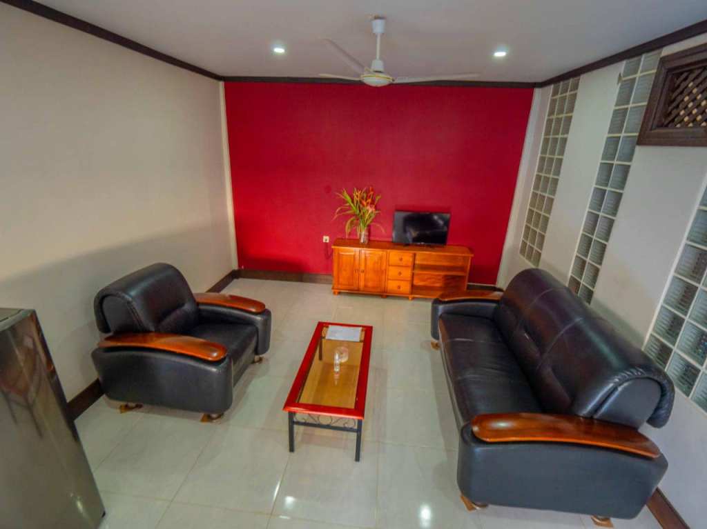 1 slaapkamer met klamboe, douche, toilet, 1 woonkamer, balkon, TV, gratis wifi, airco in slaapkamer, warm water, gezamenlijk washok met de andere appartementen.