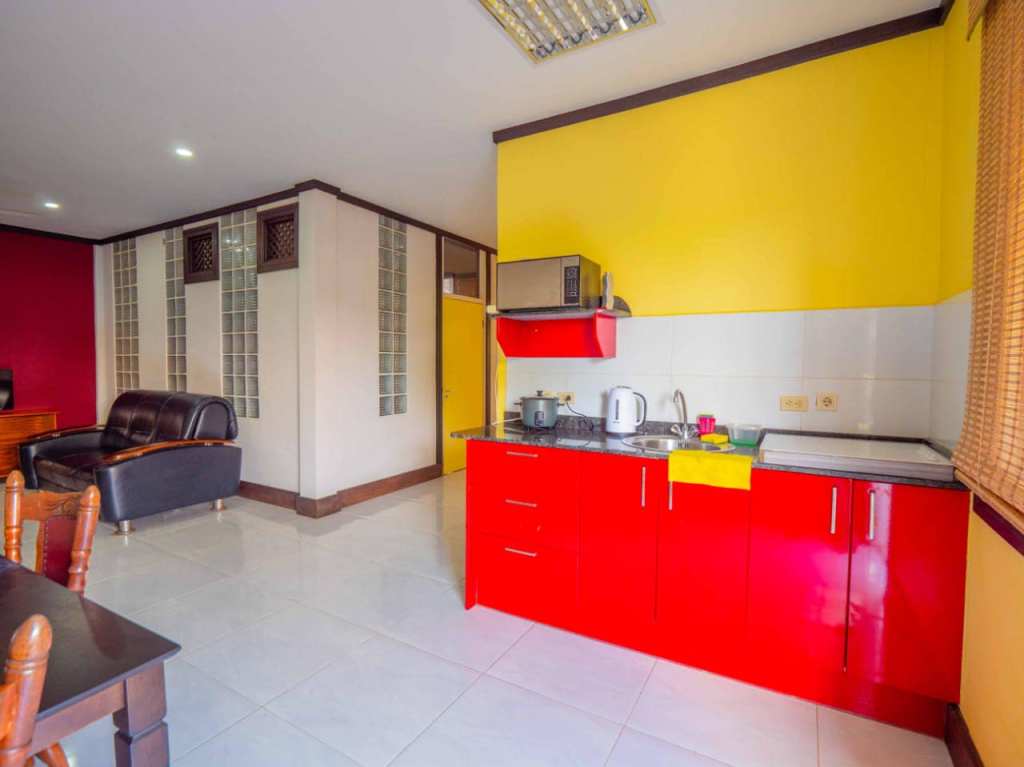 Keuken heeft een 2-pits inductieplaat, koelkast, vriezer, magnetron, rijstkoker, waterkoker.